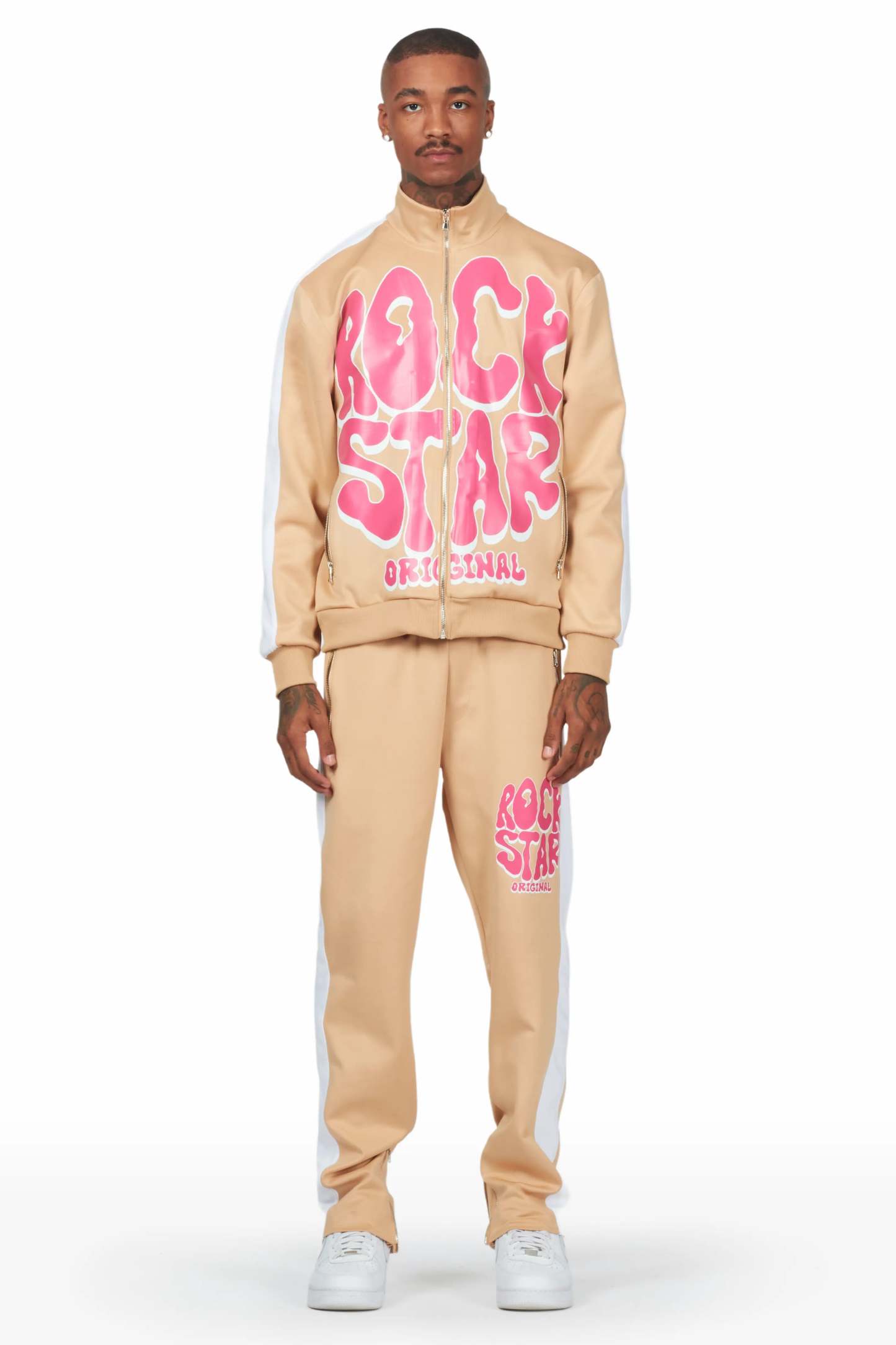 Warblen Beige Tricot Slim Fit Track Set