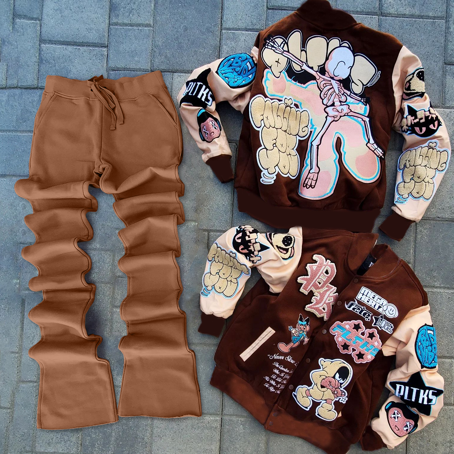 Street style fashionable jacket and flared pants suit