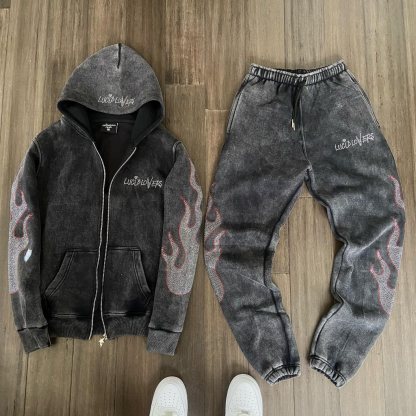 Stylish Retro Zip Hoodie Tracksuit
