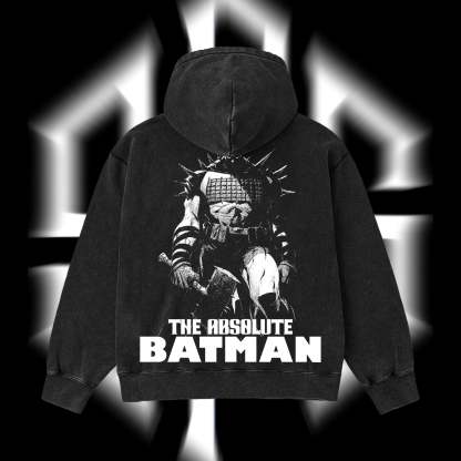 The Dark Knight "Absolute Batman" - The Gotham Guardian Hero Verse DC Comics Edition Double Printed Oversize Lightweight Acid Washed Hoodie
