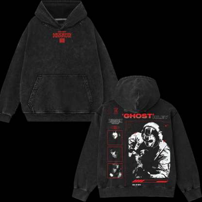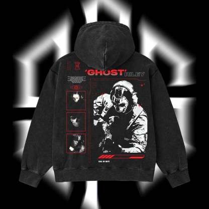 [Collection] Simon "Ghost" Riley Skull Mask Warrior Call of Duty: Modern Warfare Il Edition Double Printed Oversize Lightweight Acid Washed Hoodie
