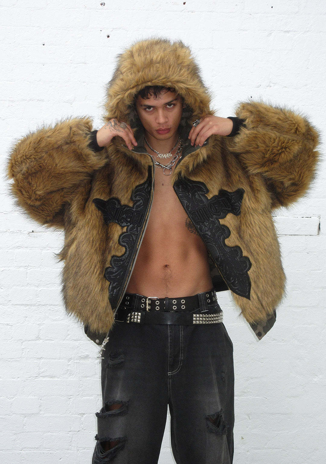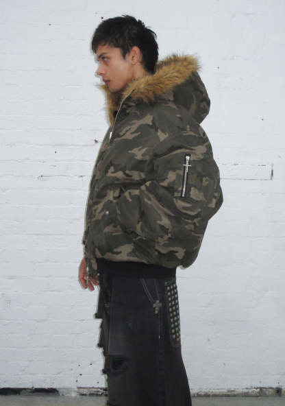 FERAL FAUX FUR REVERSIBLE BOMBER JACKET CAMO AND NATURAL