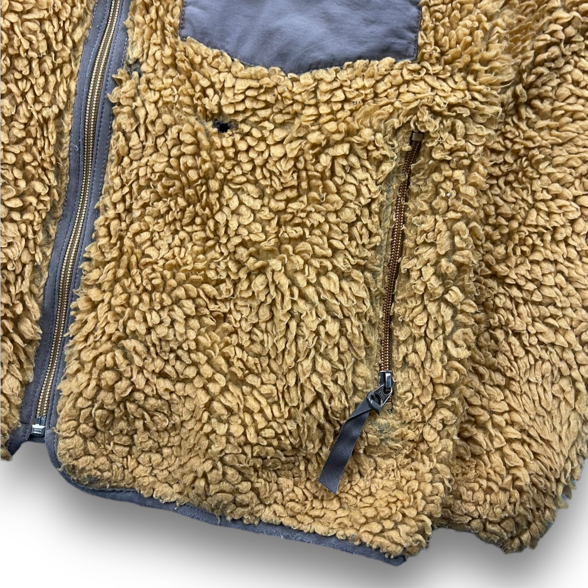 Coveted Tequila Gold / Dark Taupe Colourway from Fall 2001. Very rare and sought after fleece. Made in USA, very high quality deep pile fleece.