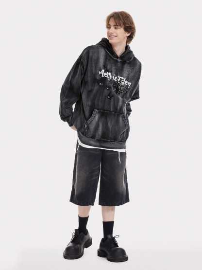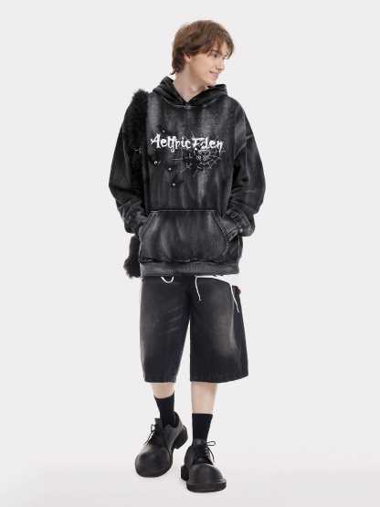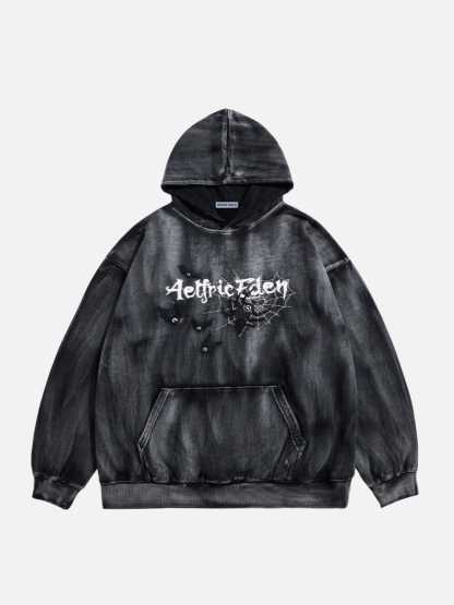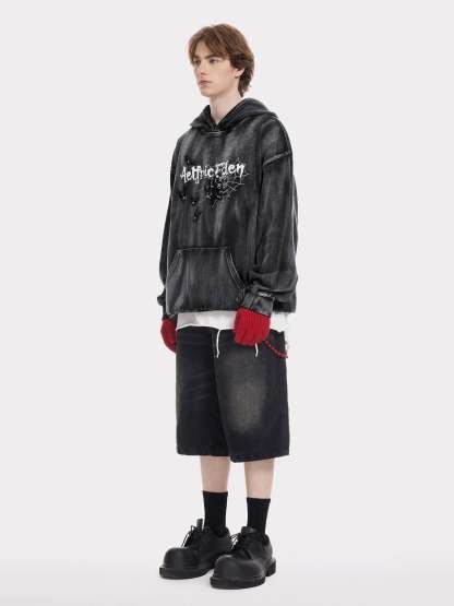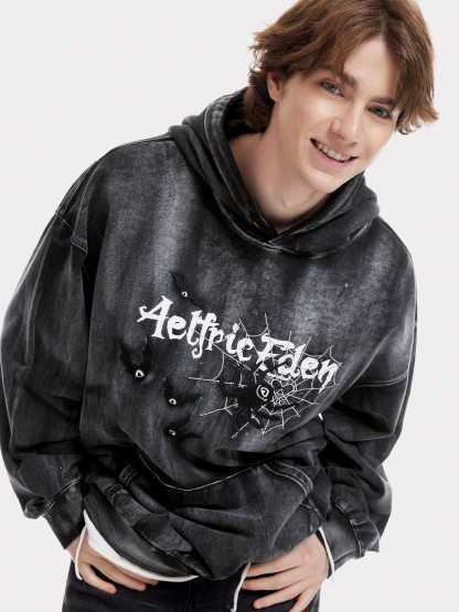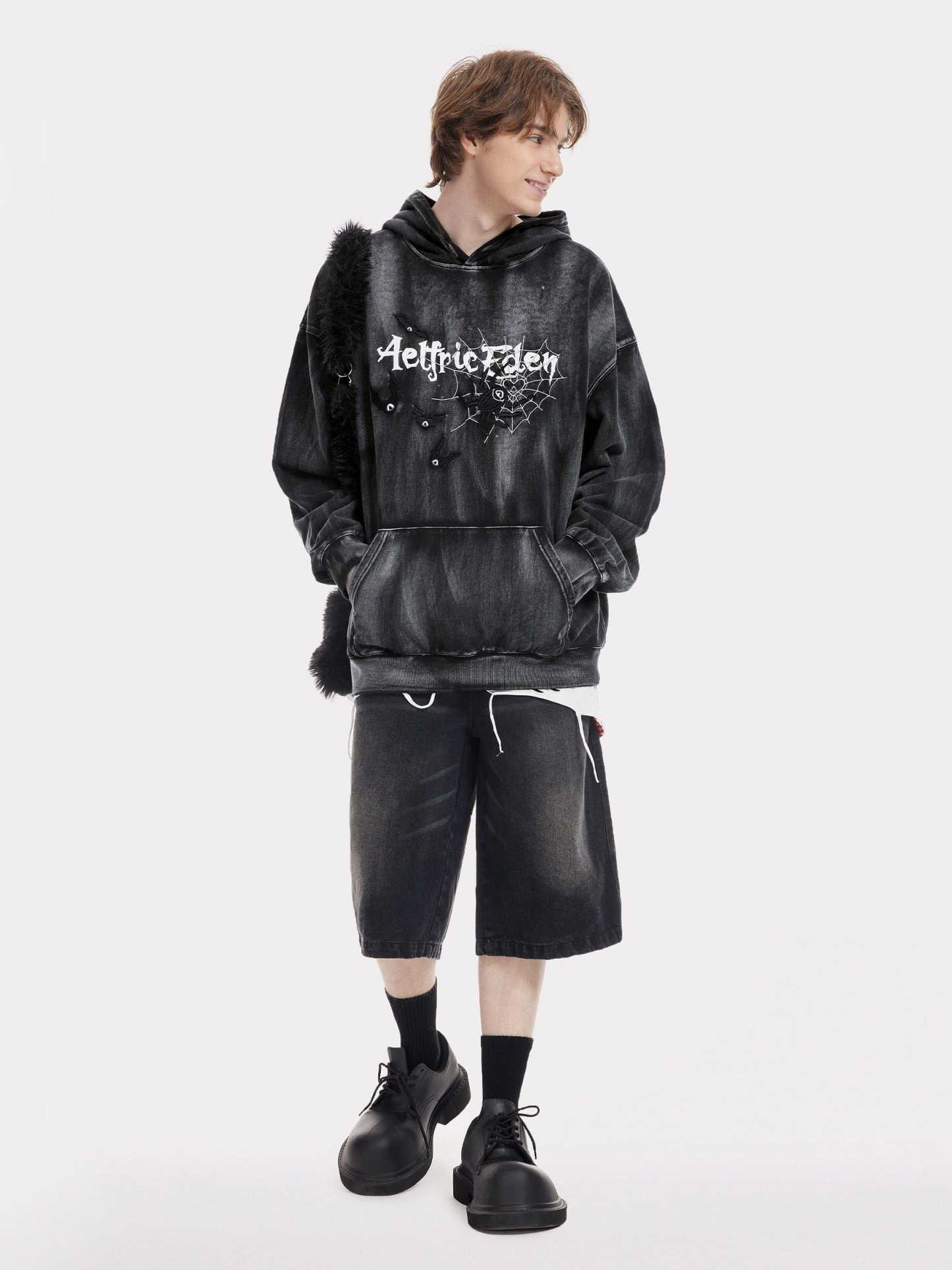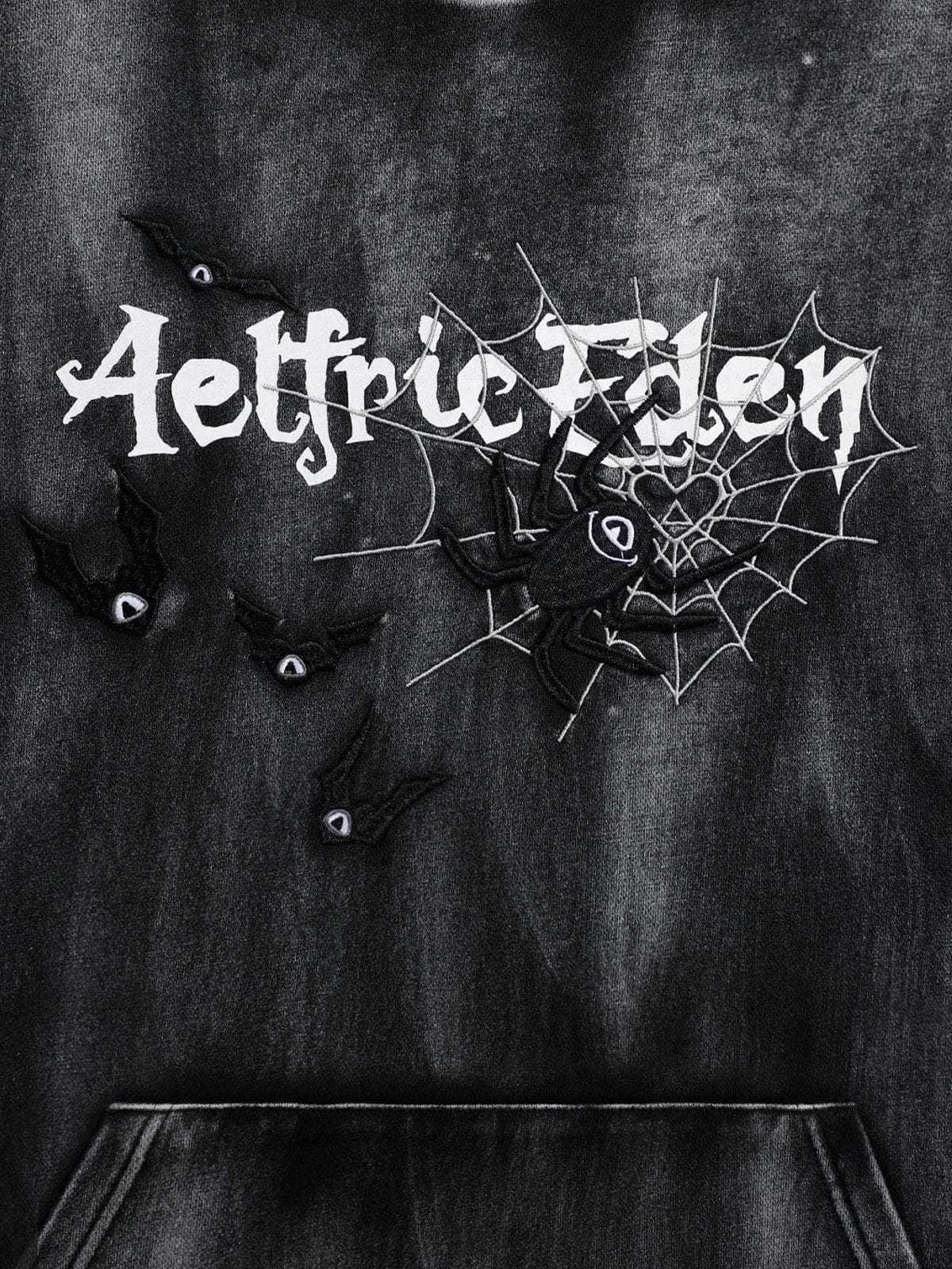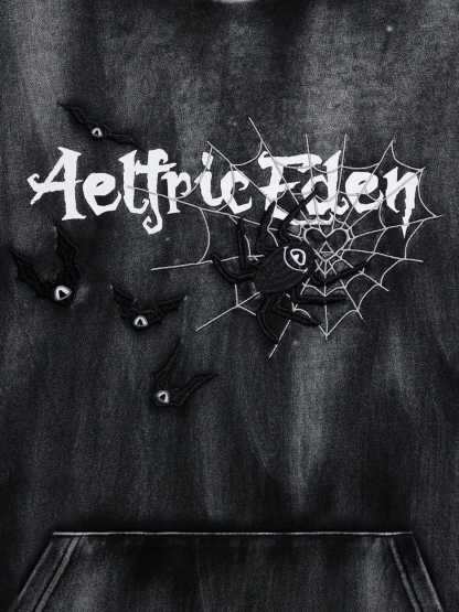 Aelfric Eden Embroidery Bat Spider Washed Pullover Hoodie