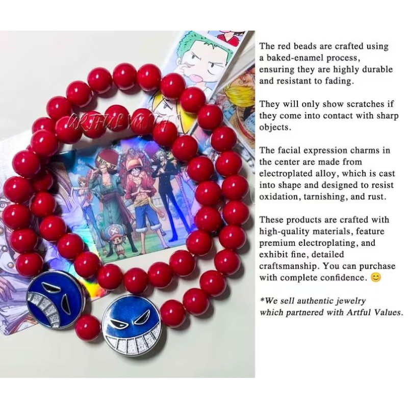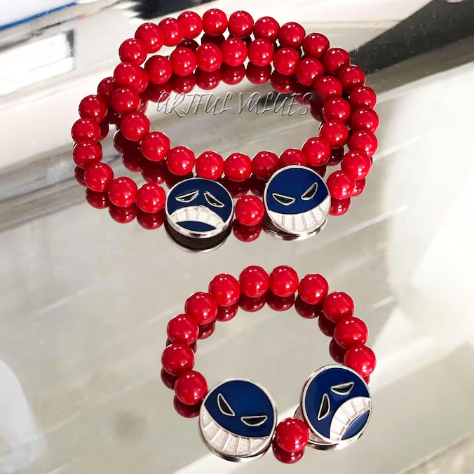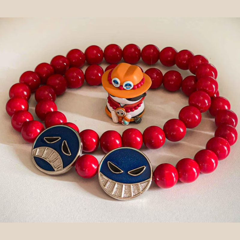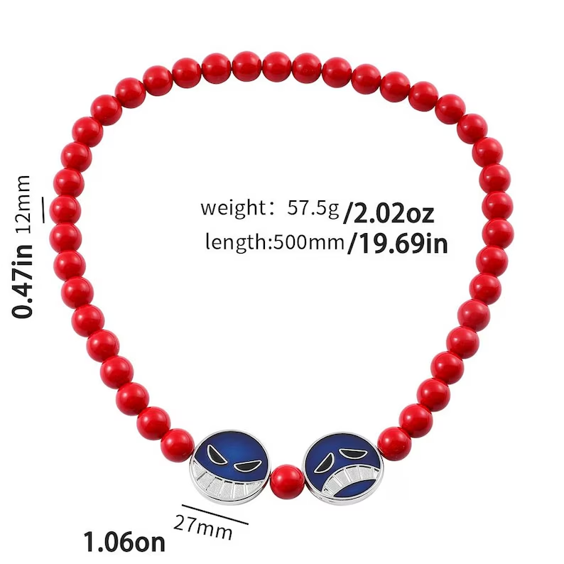 Pirate anime character red beads bracelet and necklace set, boast an intricate design that pays homage to his iconic character.