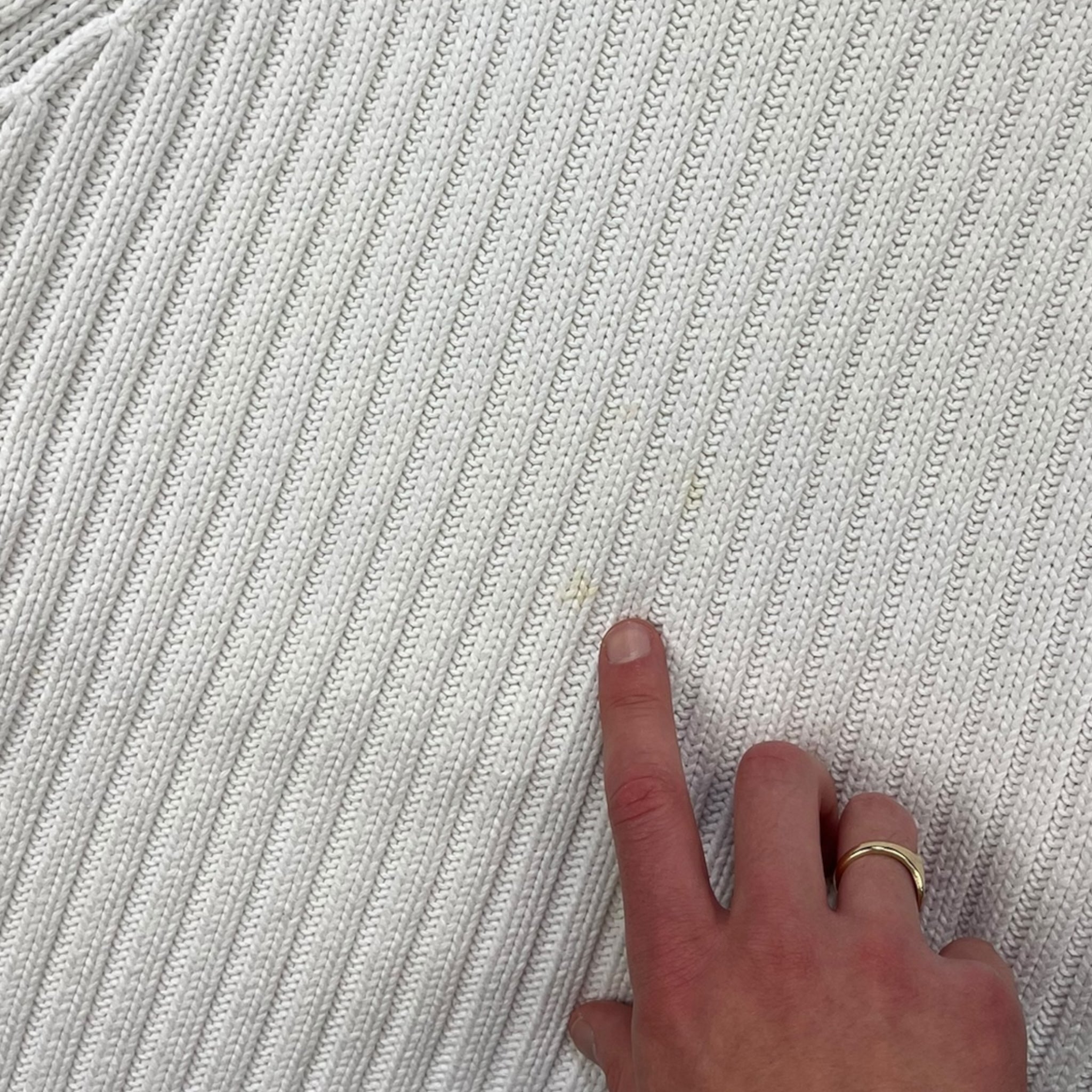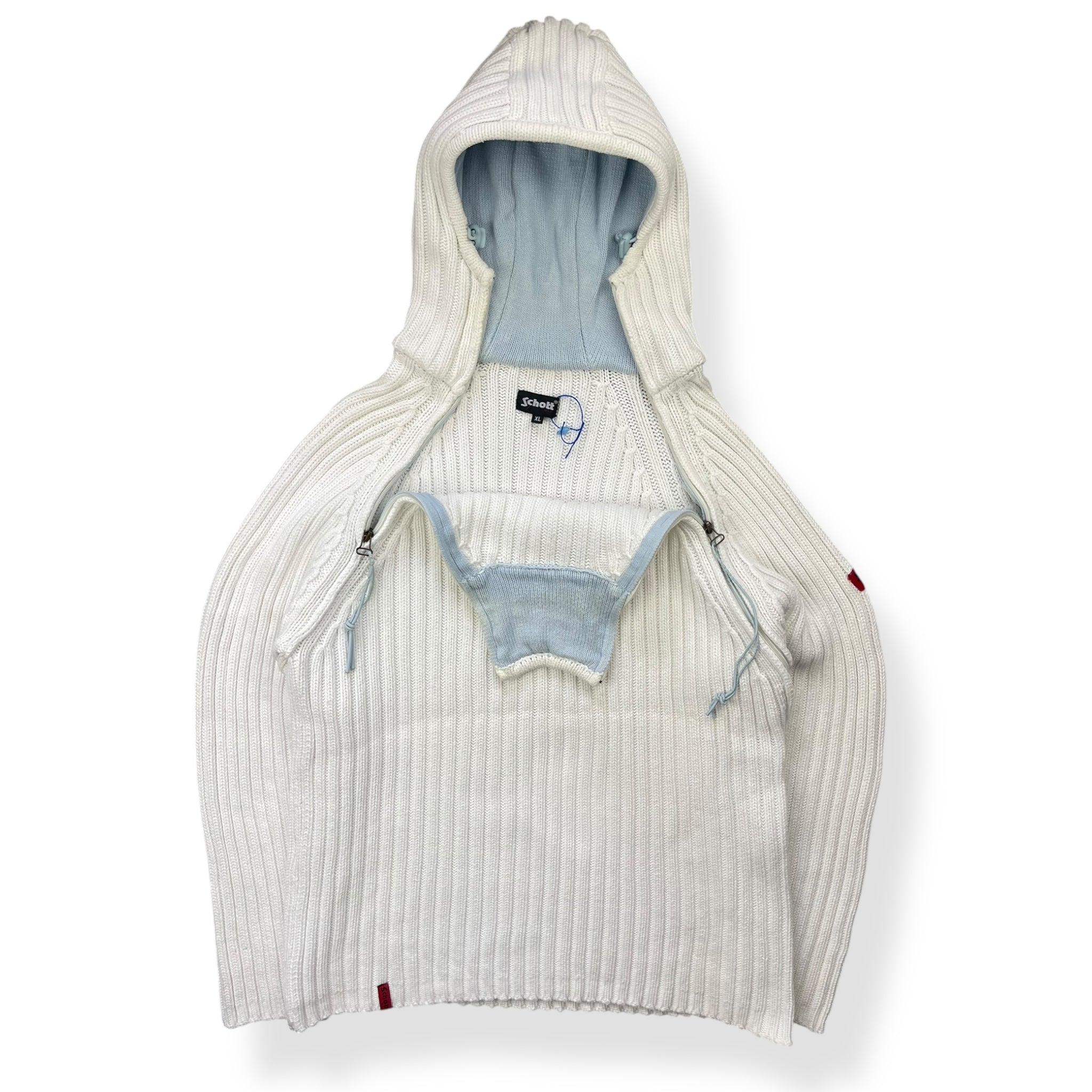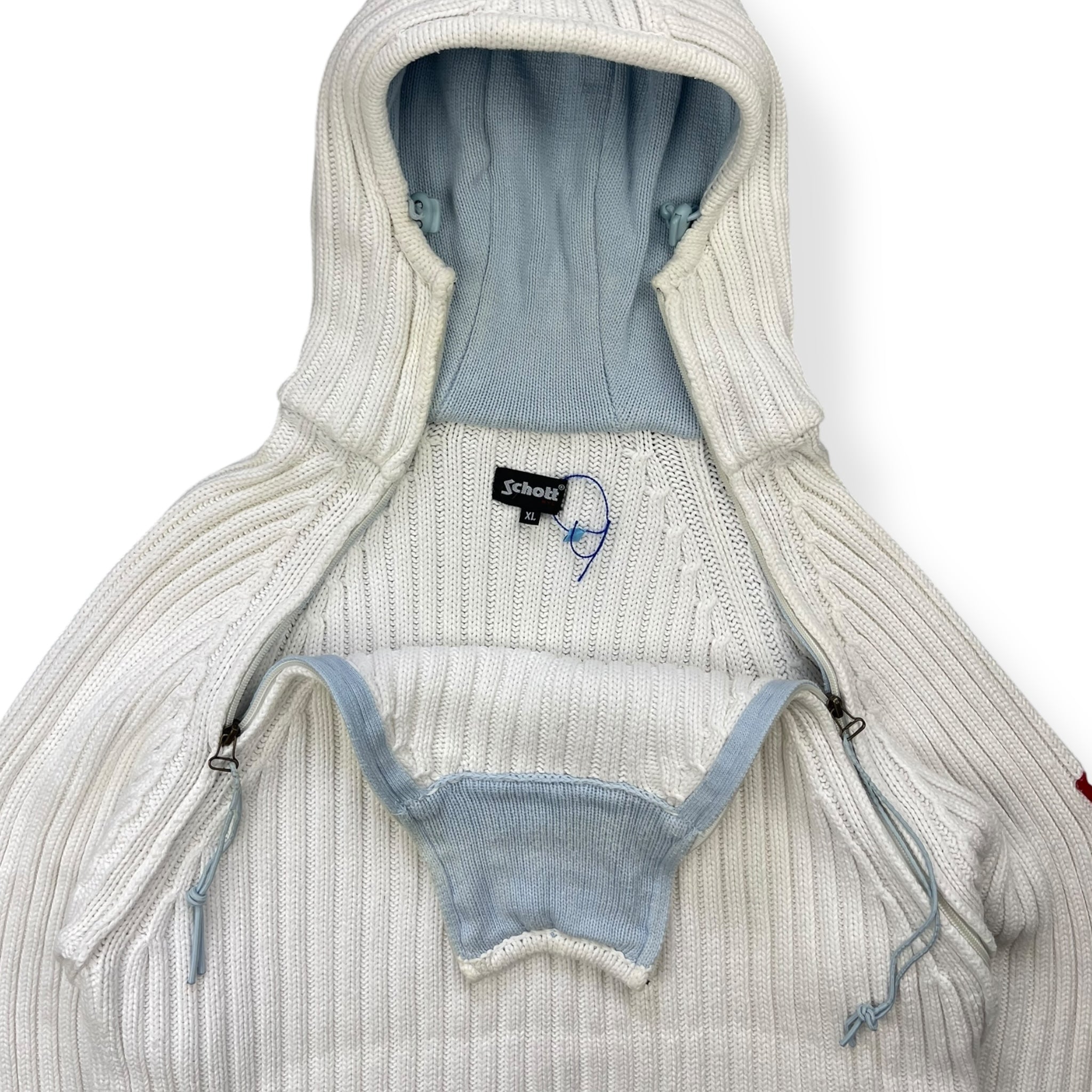 White/Baby Blue colourway. Dual zip opening, left sided zip can open up fully. Heavyweight knit.