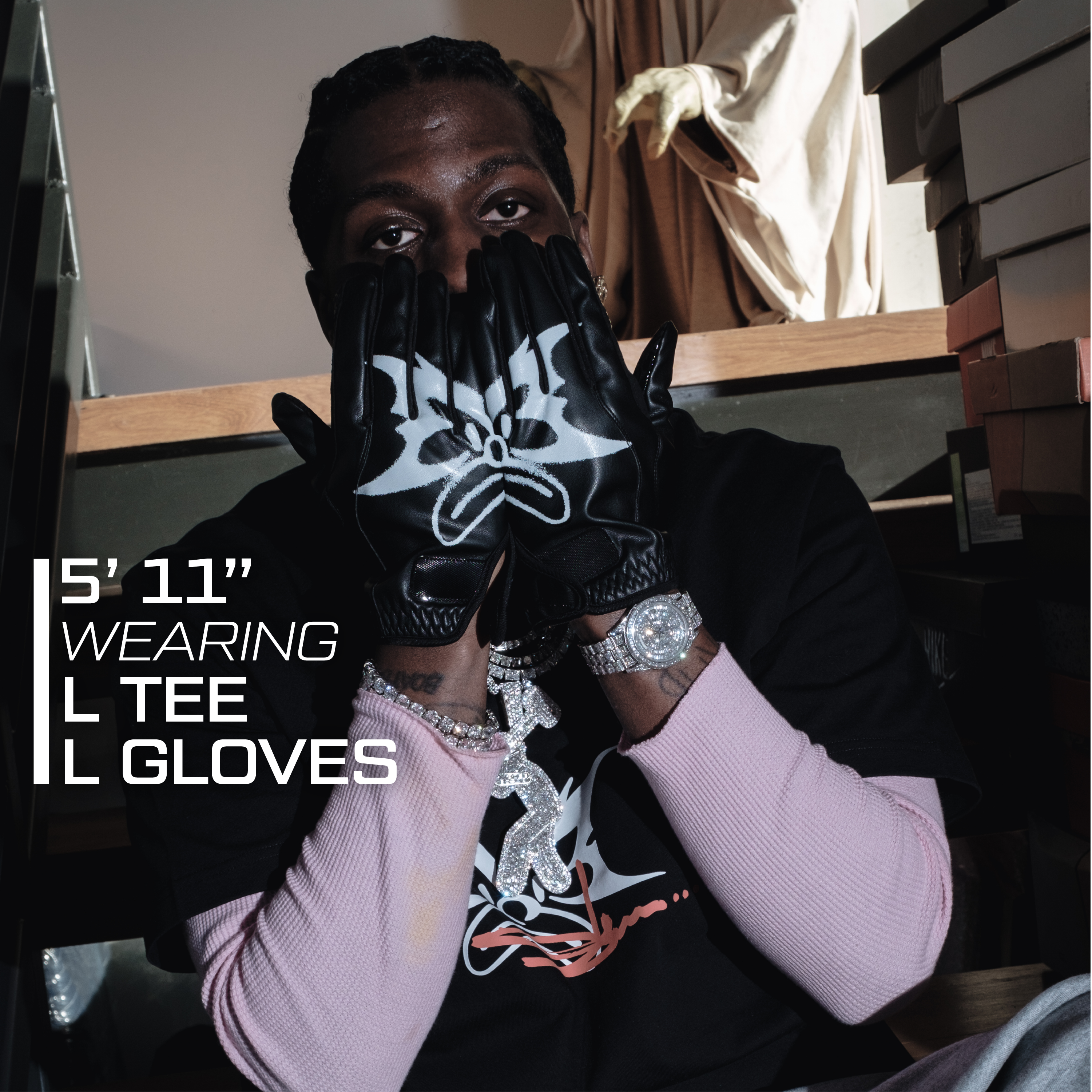 • PU leather with silk printed collab logo• Microfibre palm with silicone monogram print• Debossed logos on velcro wrist tighteners