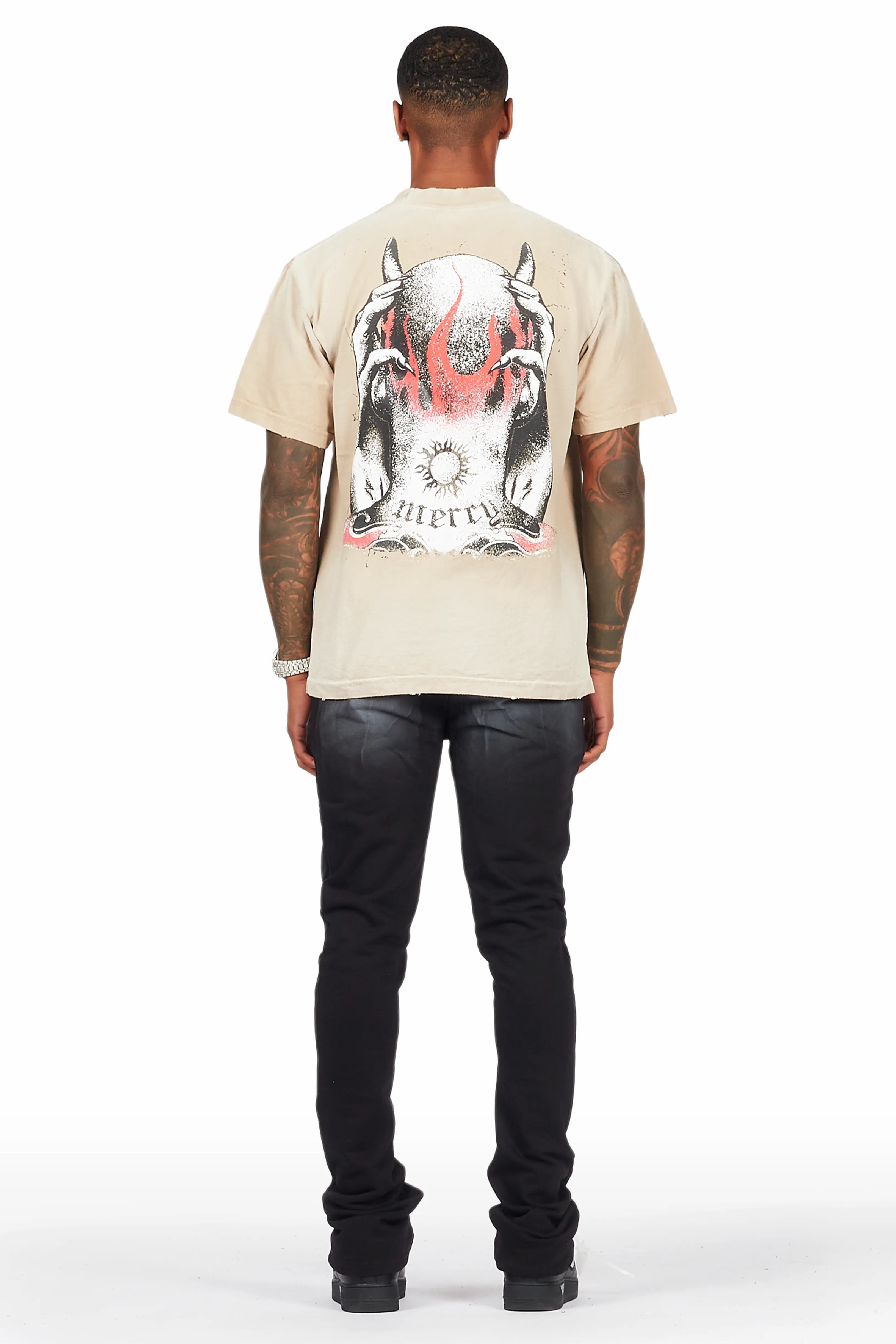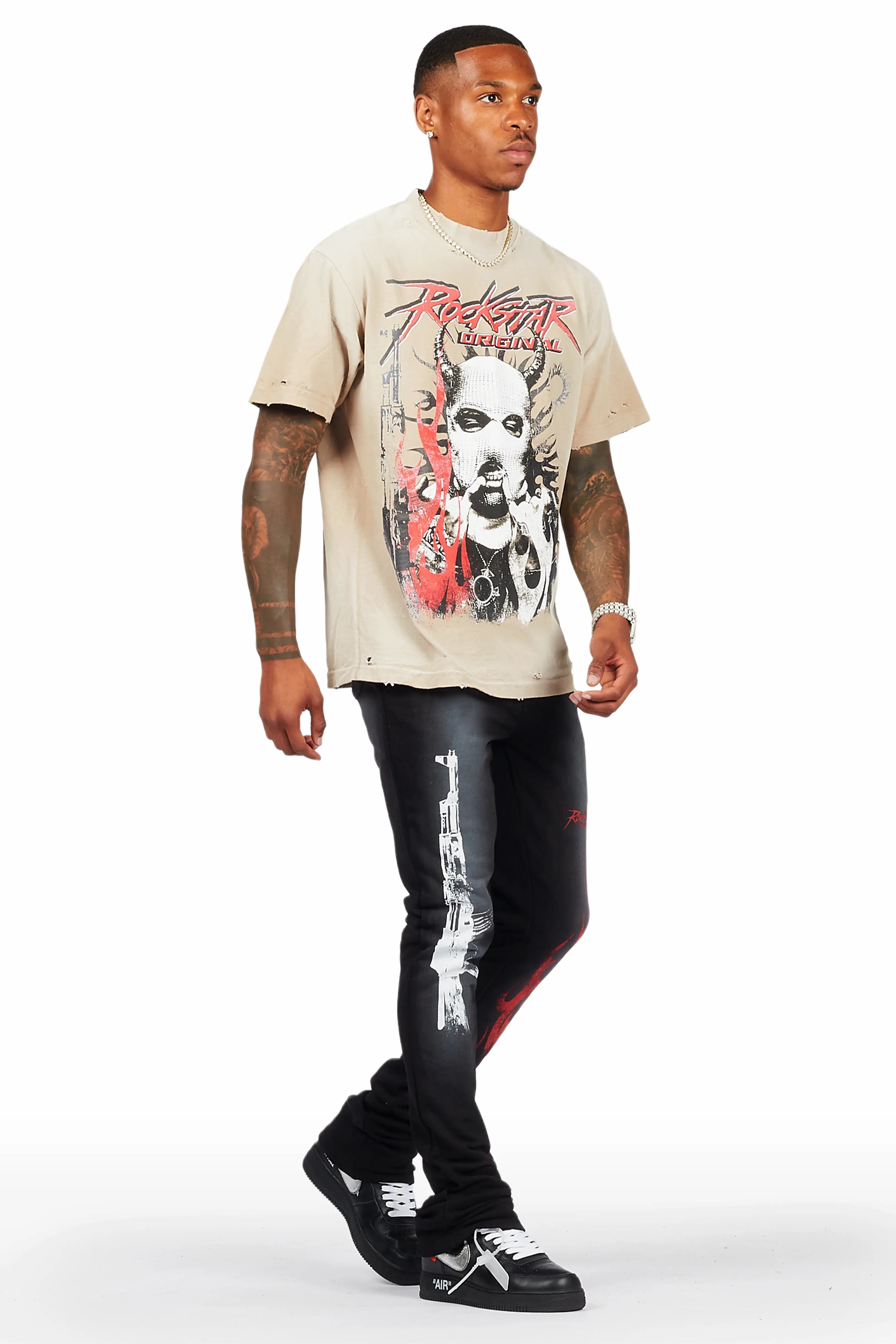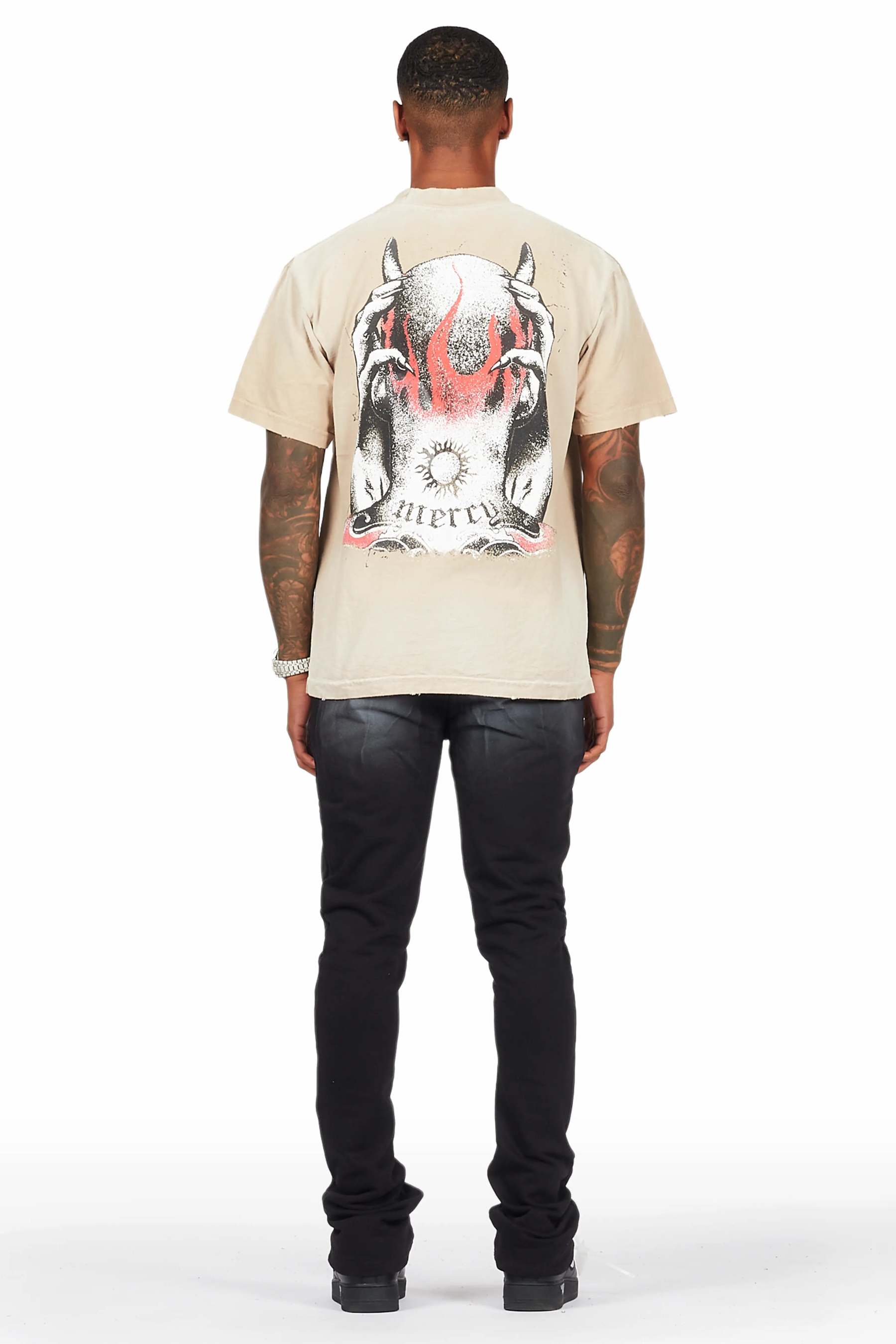 Mercy Beige/Black Oversized T-Shirt/ Stacked Flare Track Pant Set