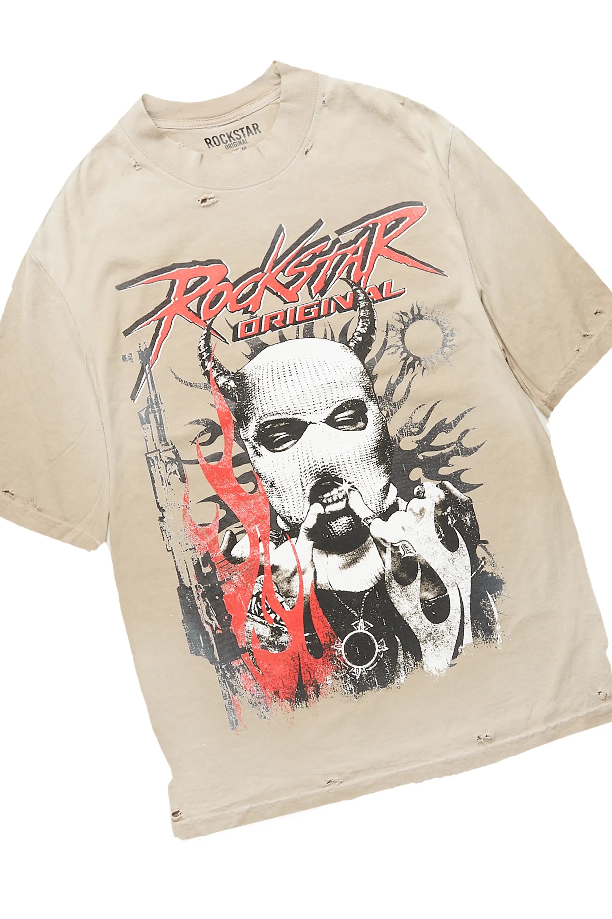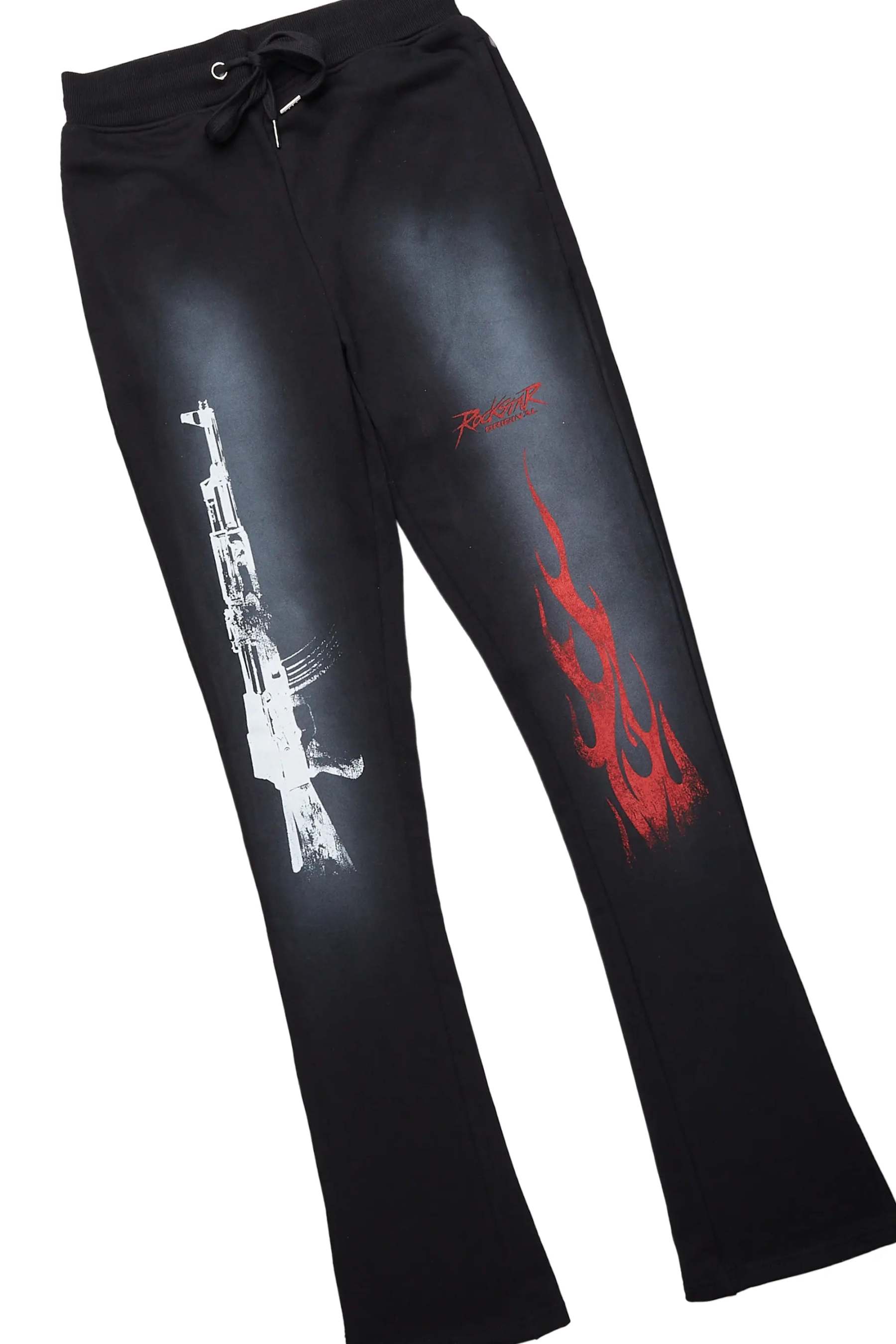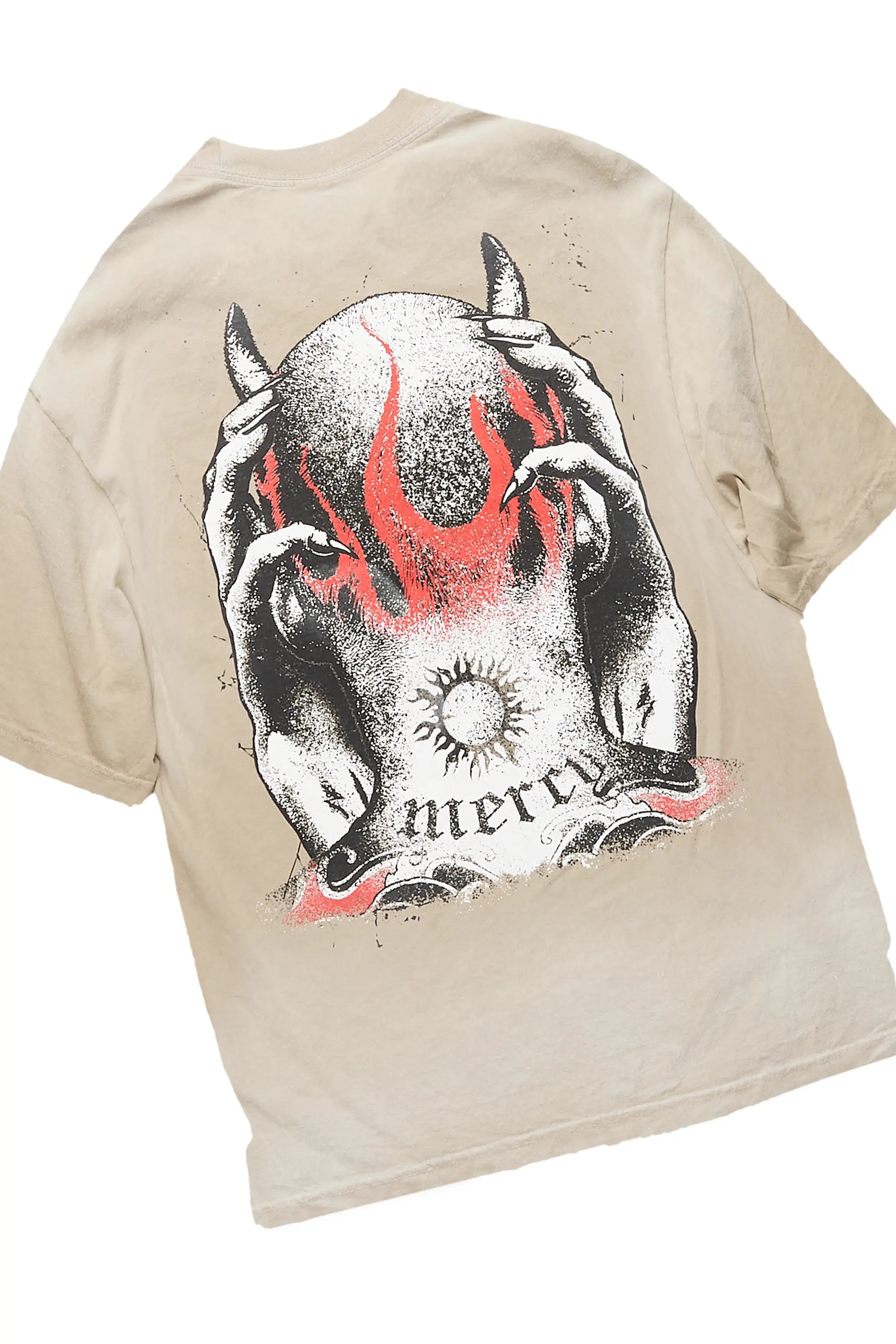 Mercy Beige/Black Oversized T-Shirt/ Stacked Flare Track Pant Set