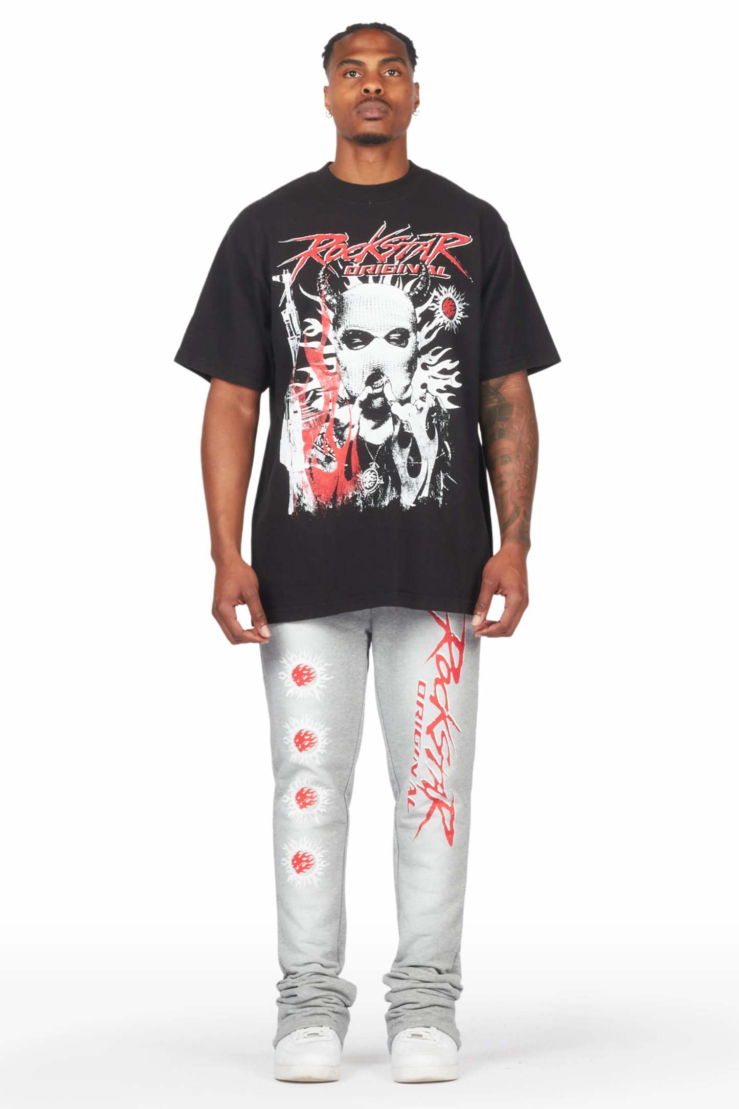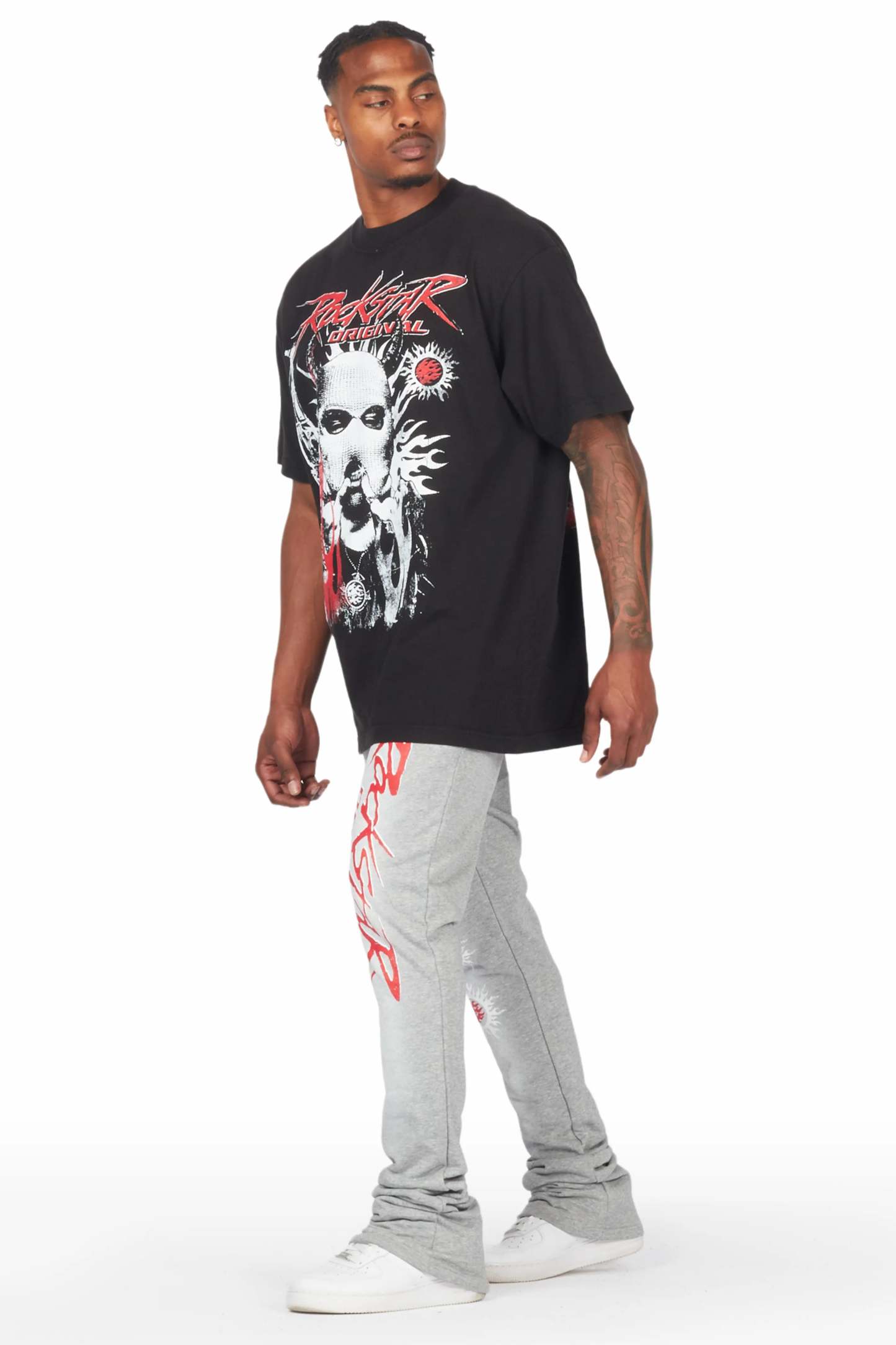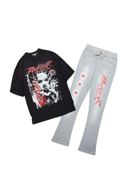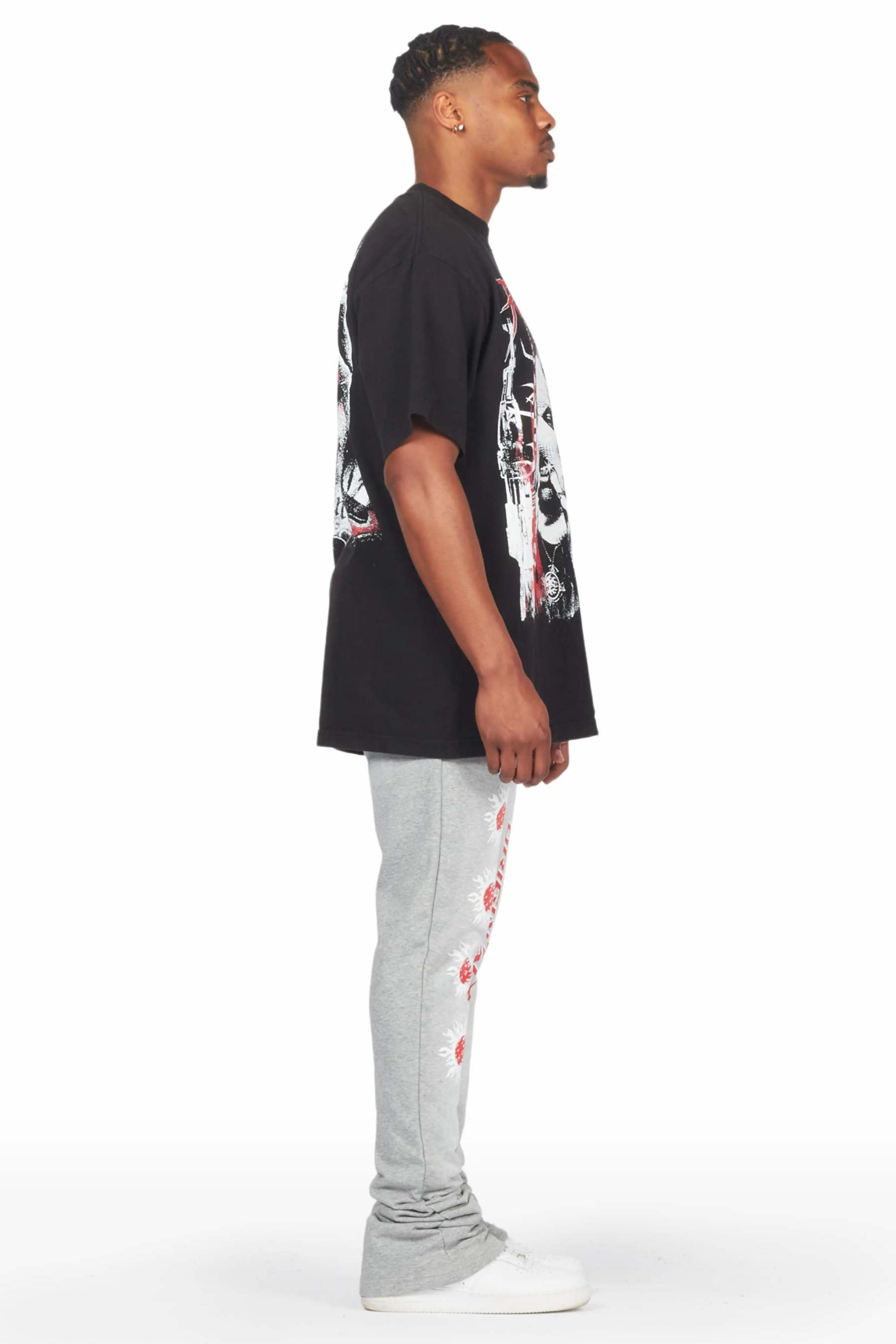 Mercy Black/Grey Oversized T-Shirt/ Stacked Flare Track Pant Set