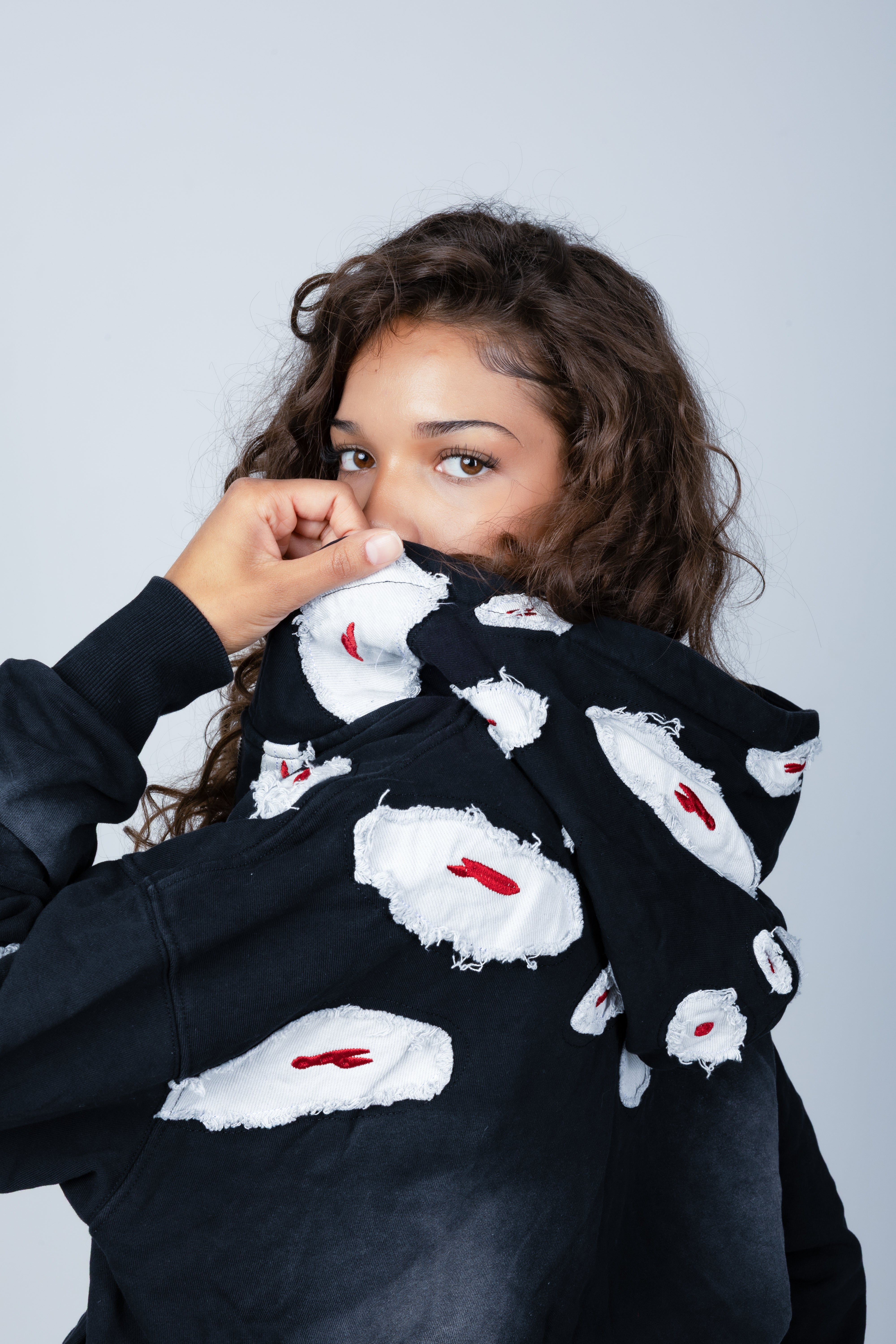 Step into the darkness with the Allmighty Zip-Up Hoodie, a black, lightly washed hoodie covered in the eyes of the allmighty. Whether you catch the reference or just love the dark streetwear aesthetic, this piece is the perfect mix of mystery and style. A bold statement on its own, but for the ultimate look, pair it with the Allmighty Baggy Pants for a complete, unstoppable fit.