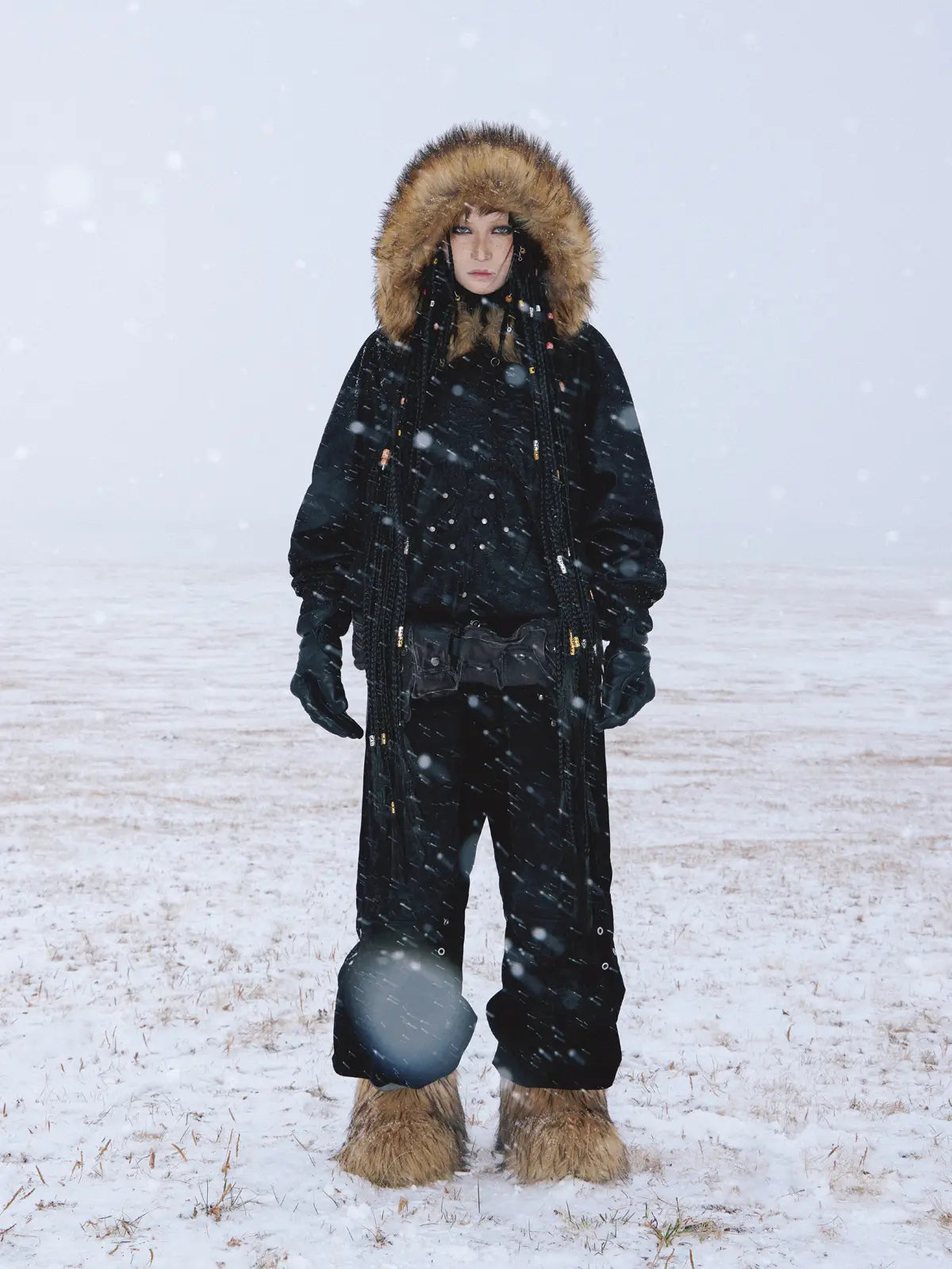 Personsoul Sun Totem Fur Collar Hoodie