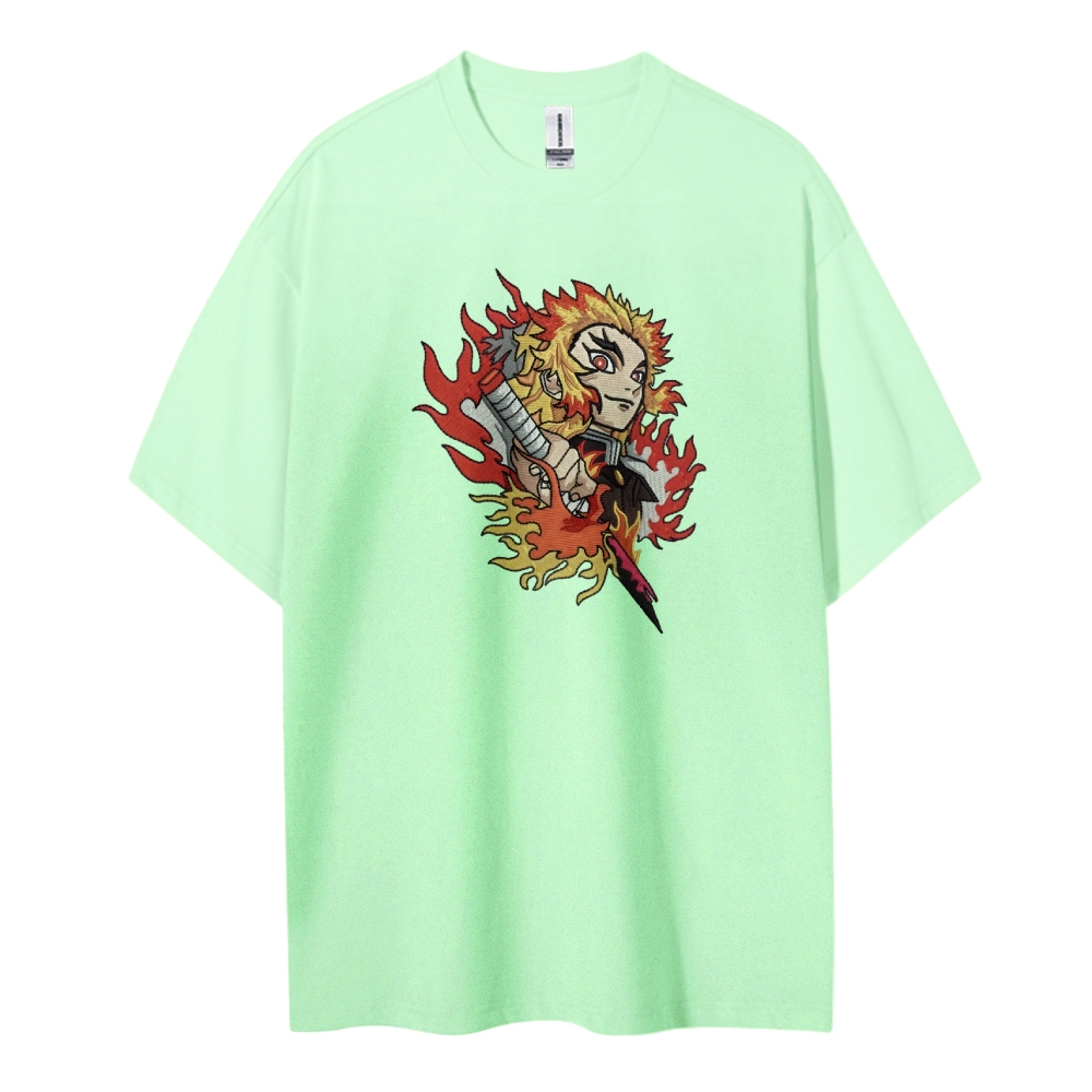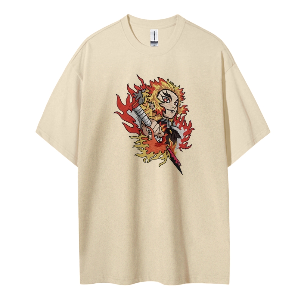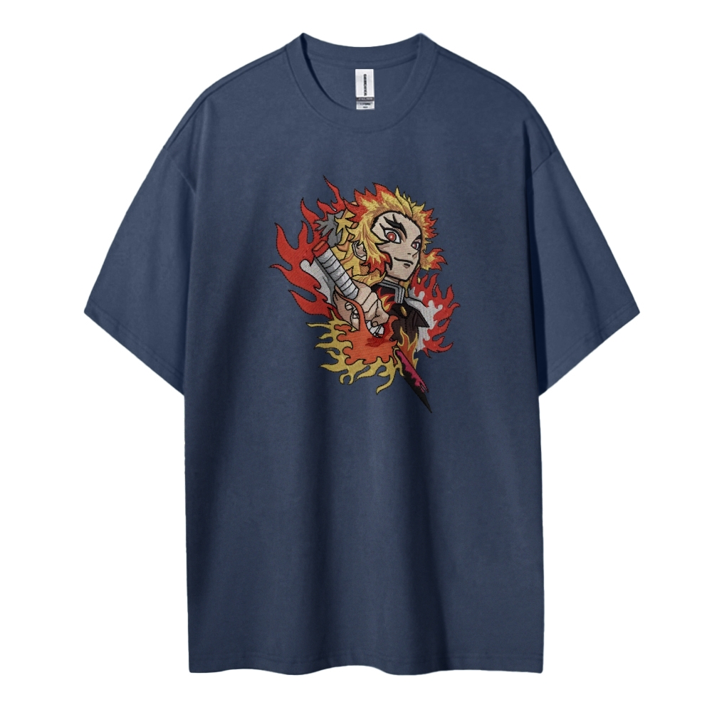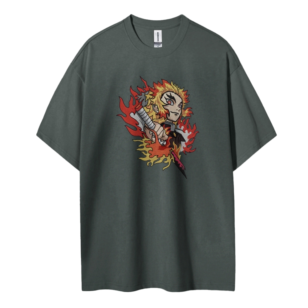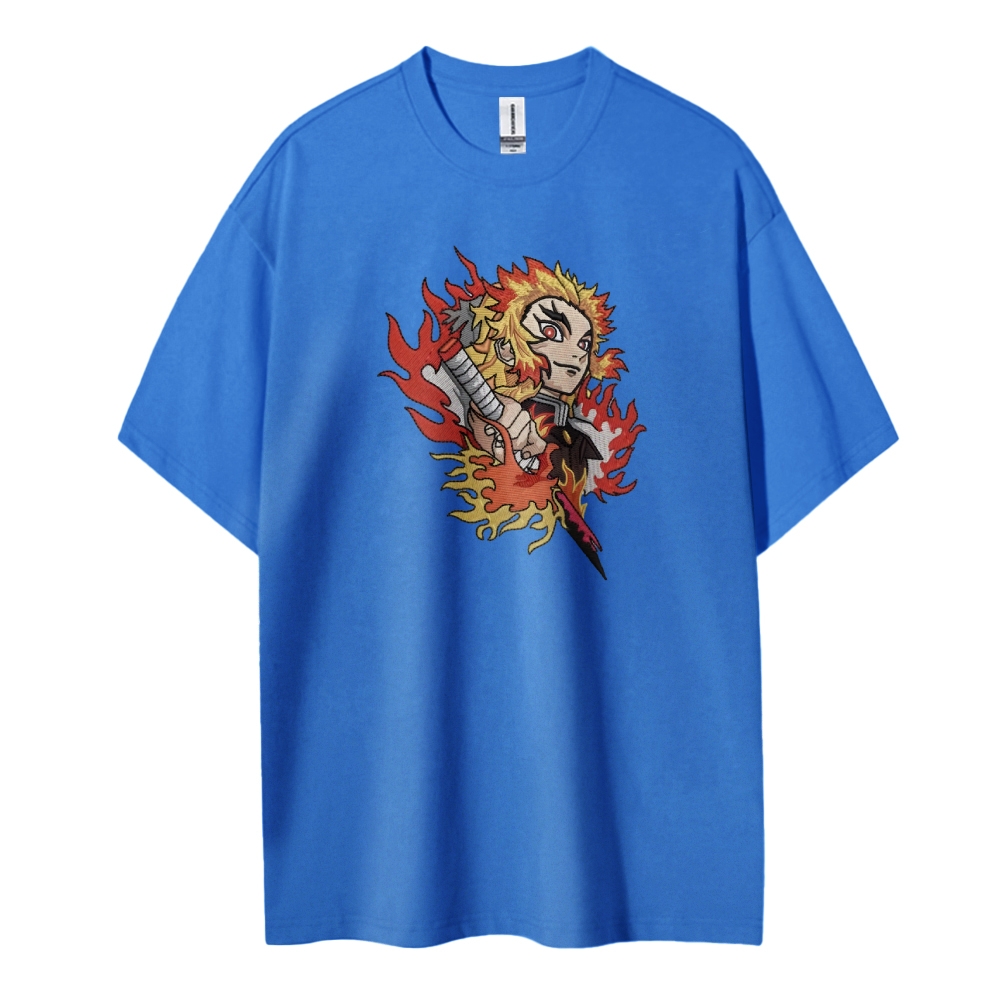 Demon Slayer embroidered pure cotton unisex round neck anime T-shirt