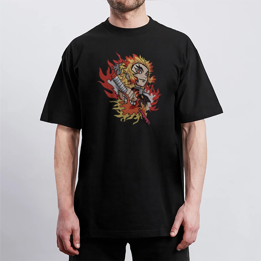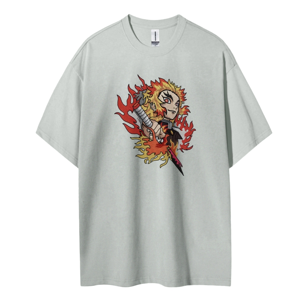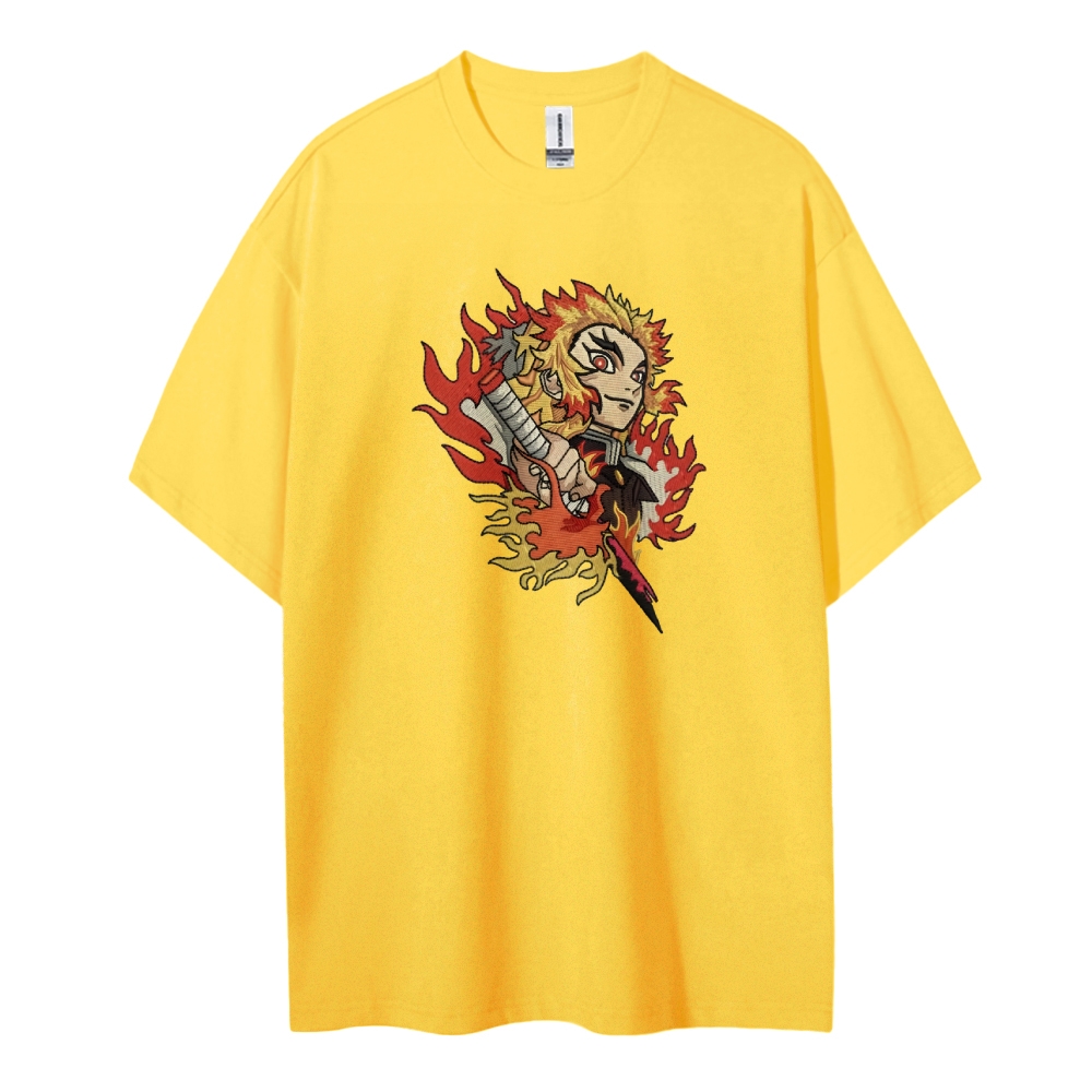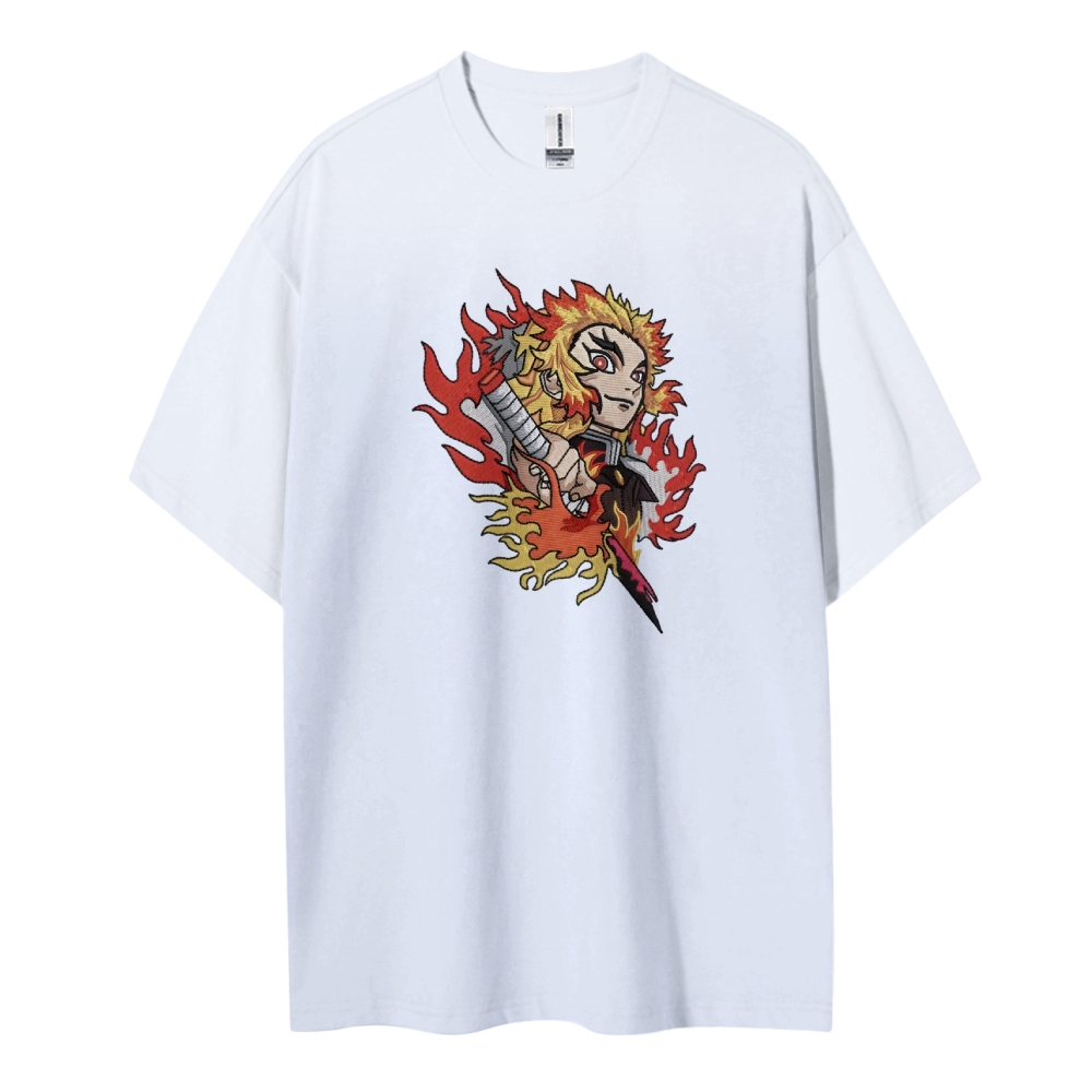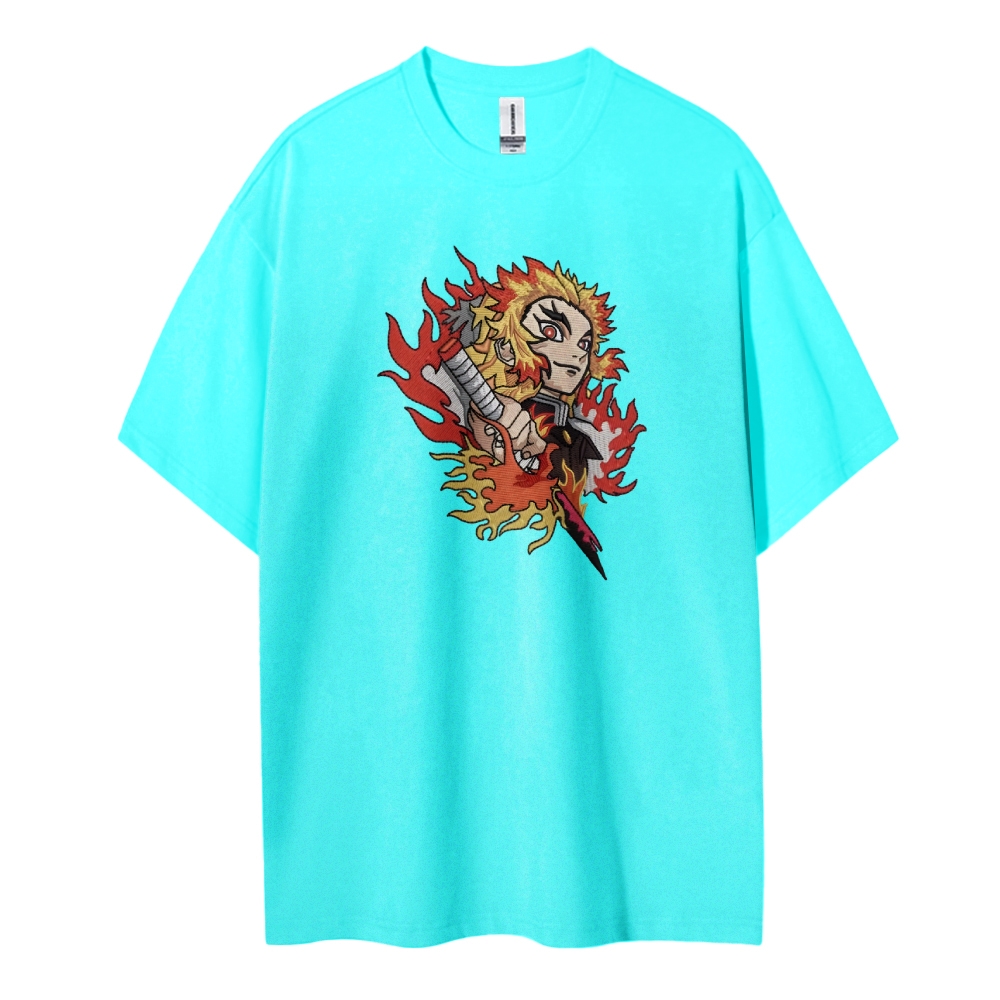 Demon Slayer embroidered pure cotton unisex round neck anime T-shirt