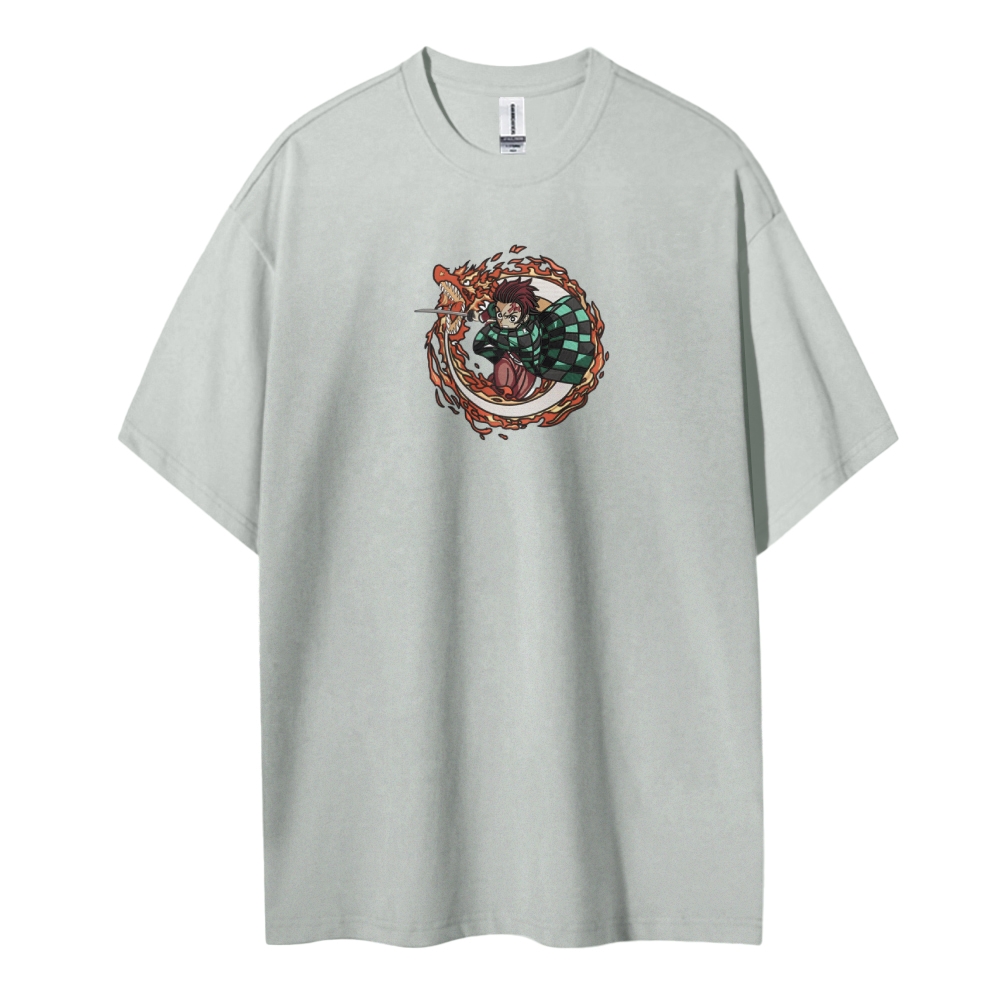 Demon Slayer: Kimetsu no Yaiba pure cotton unisex round neck anime embroidered T-shirt