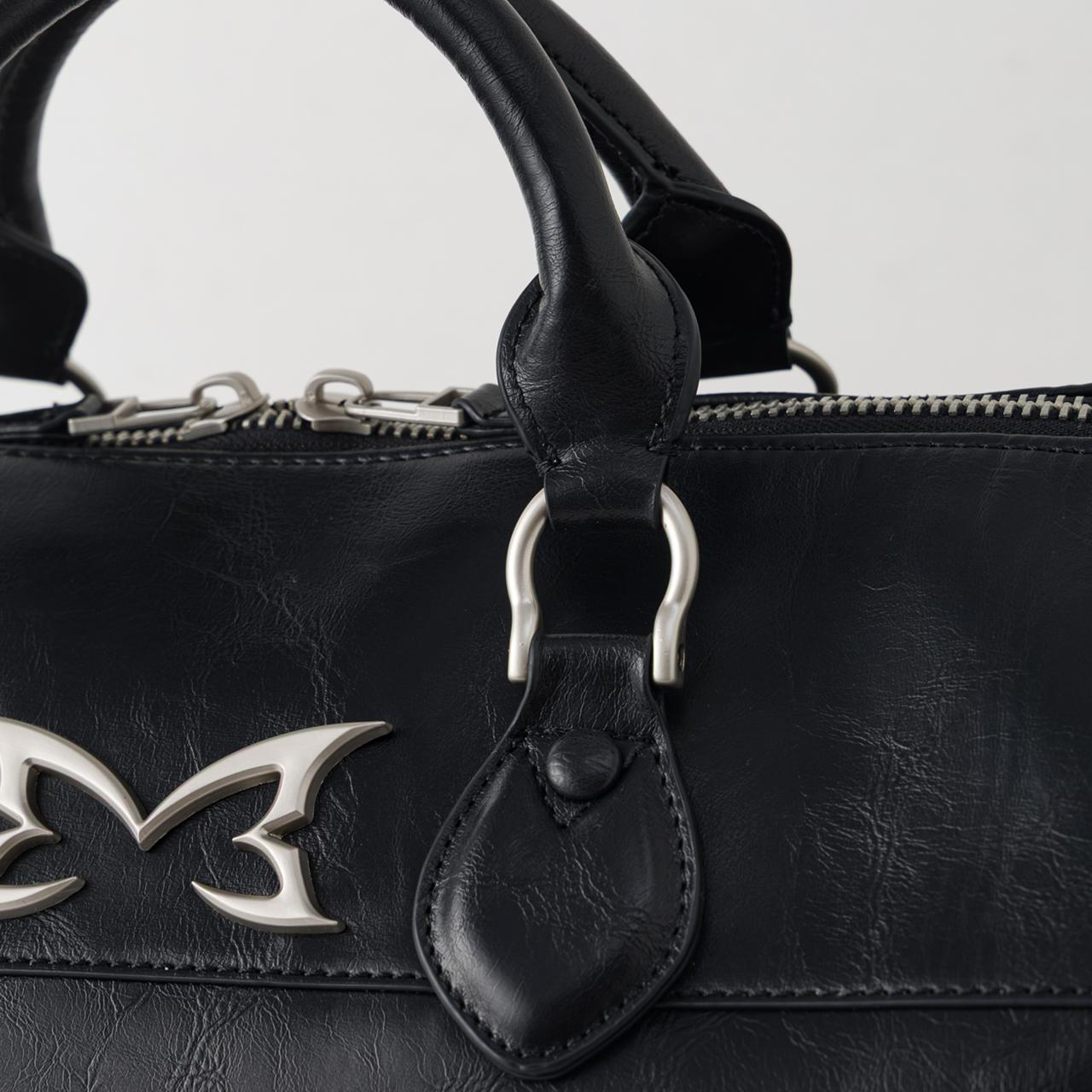 - Metal icon logos on the bag’s upper exterior