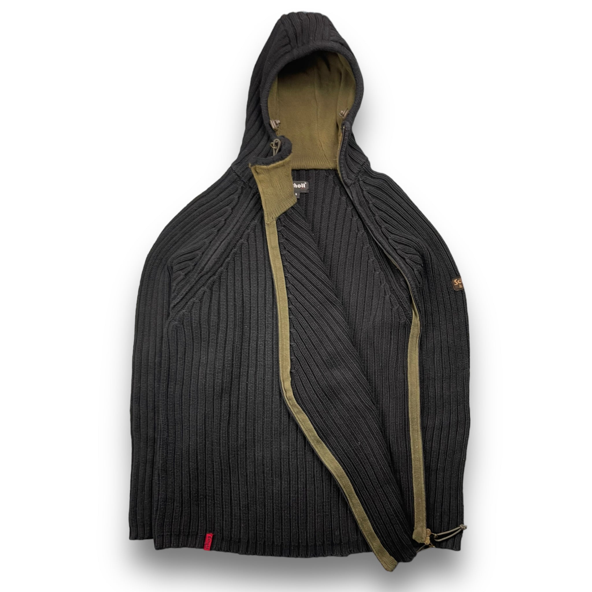 2000's Schott NYC Dual Zip Knitted Balaclava Hoodie (L)