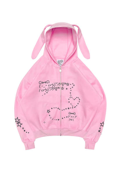 MALFUNCTION BUNNY ZIP HOODIE BABY PINK (DETACHABLE EARS)